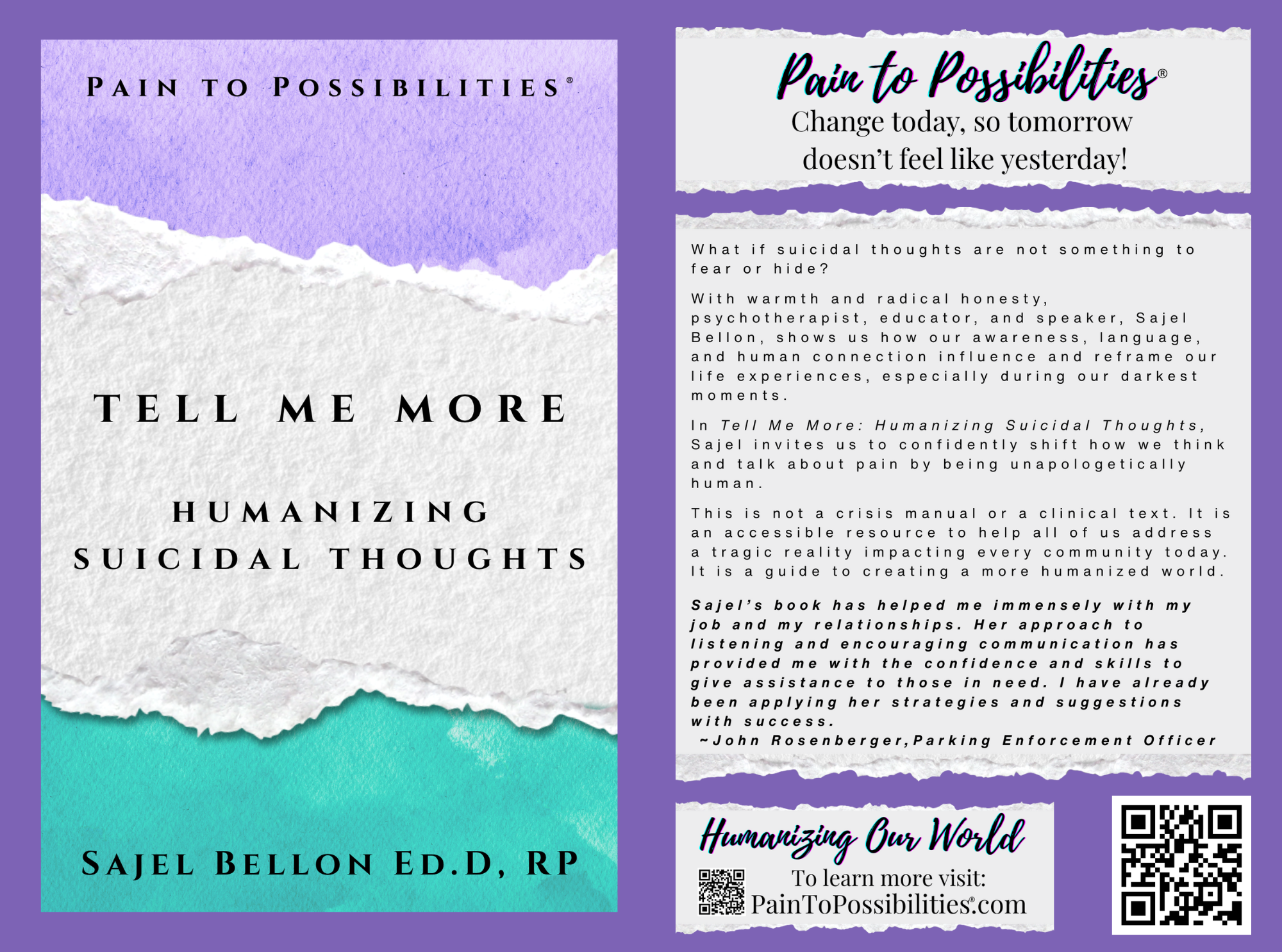 - What inspired you to write Tell Me More: Humanizing Suicidal Thoughts?